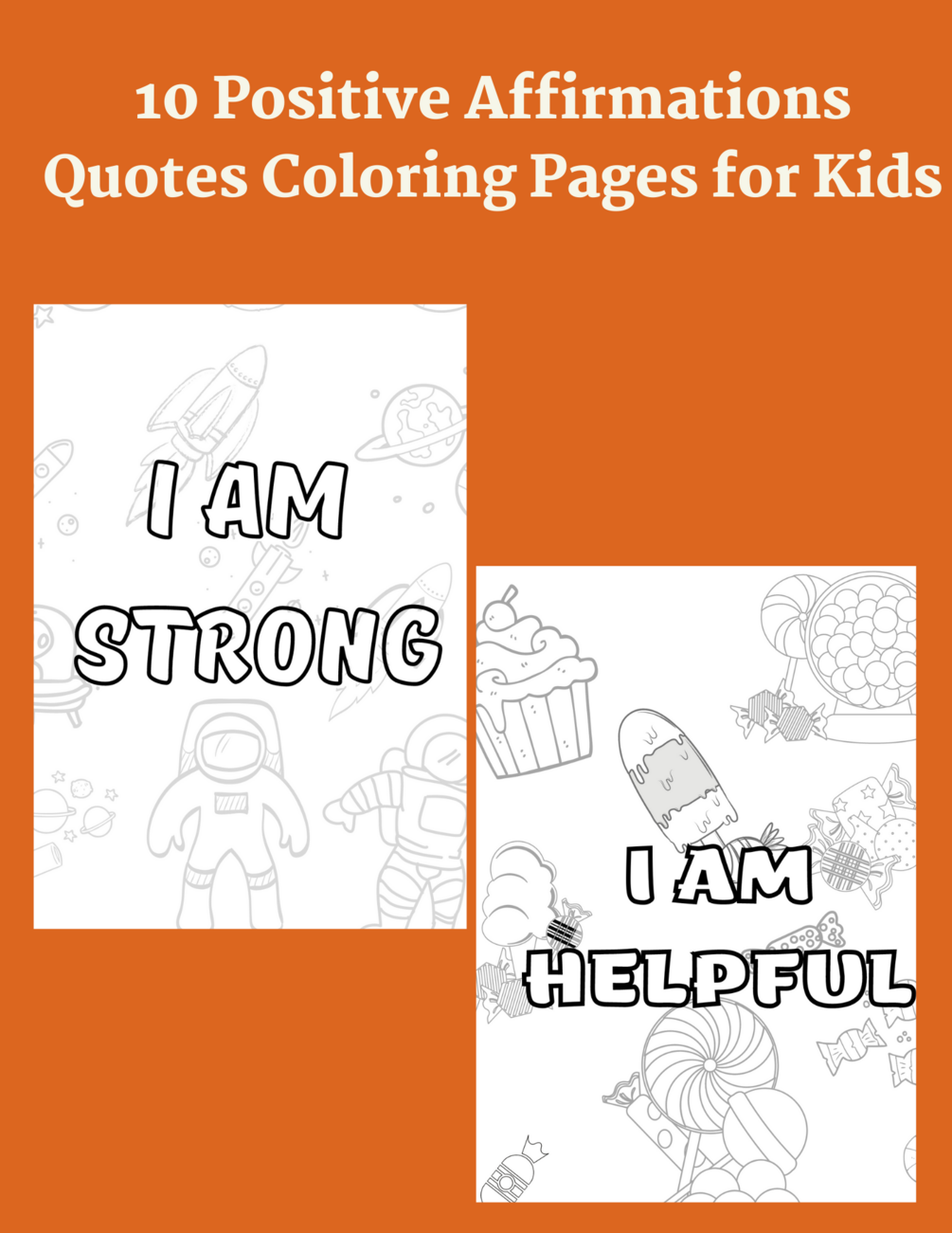 10 Positive Affirmations Quotes Coloring Pages for Kids Aged 4+ (Digital Product)